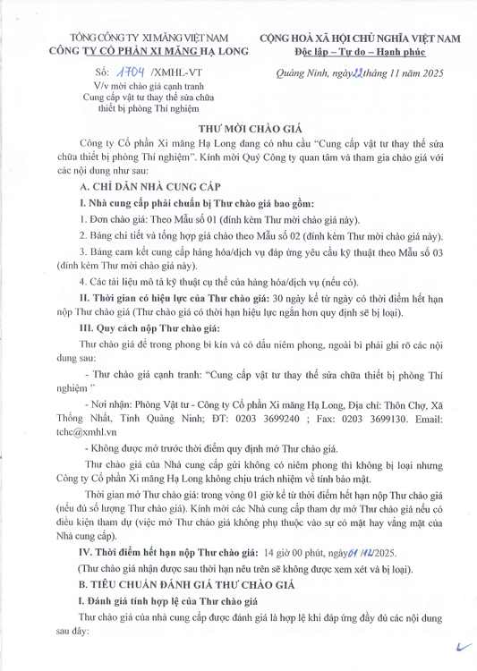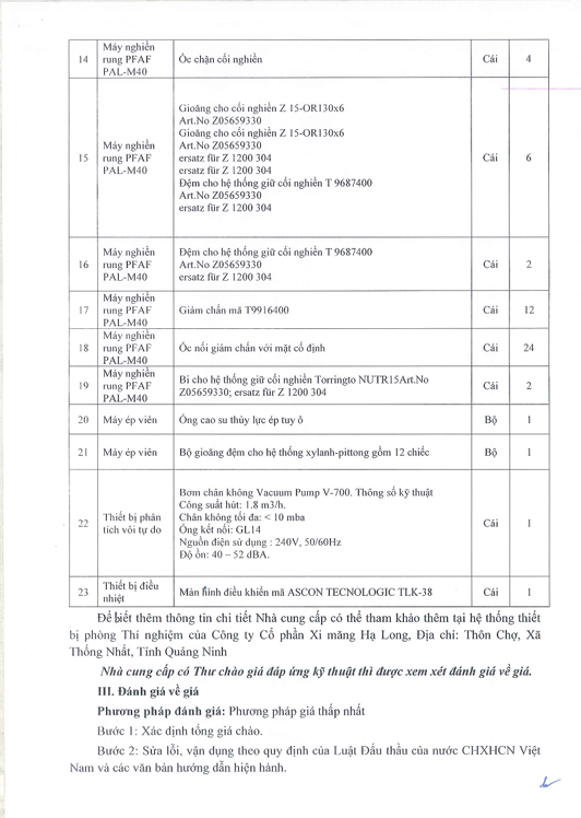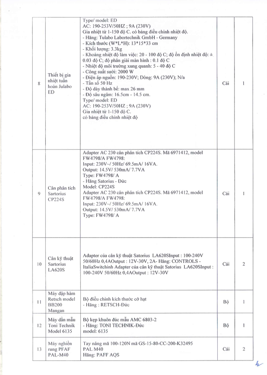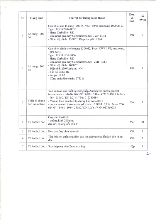 Mời chào giá cạnh tranh Cung cấp vật tư thay thế sửa chữa thiết bị phòng Thí nghiệm