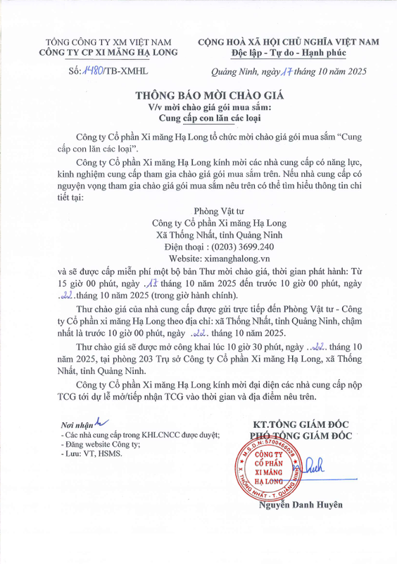 Thông báo mời chào giá gói mua sắm Cung cấp con lăn các loại